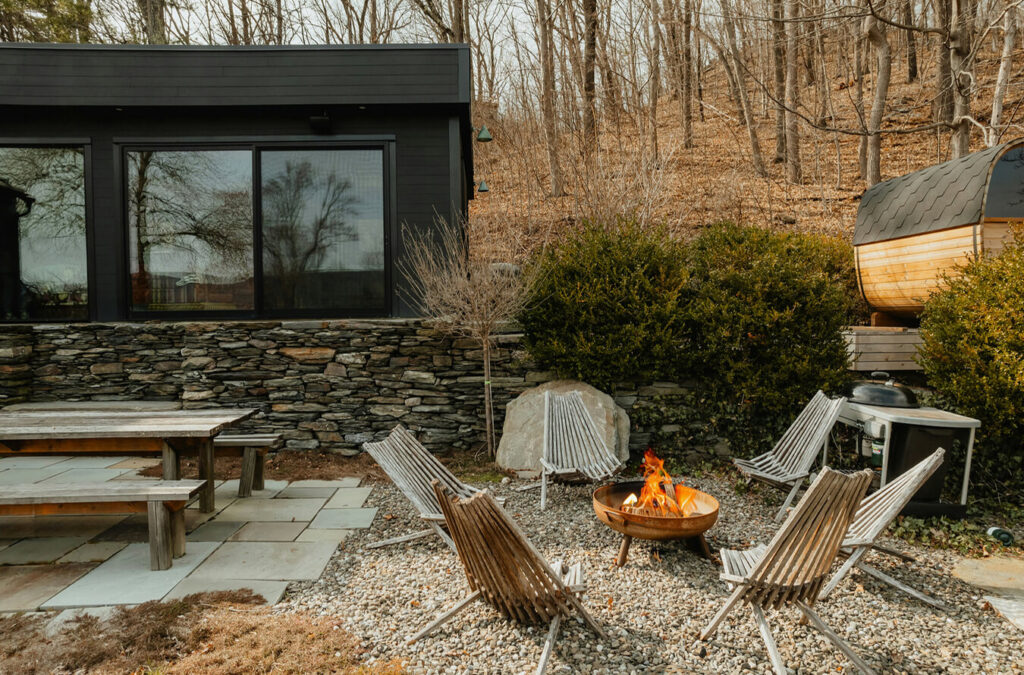 Few things feel more like home than the soft glow of a fireplace in a compact, cozy space.